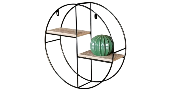 Nástěnná polička Rozměry (šířka x výška x hloubka): 37 x 37 x 10 cm Materiál: konstrukce - kov, deska - MDF Barva: černá/hnědá Dodáváno v demontu.