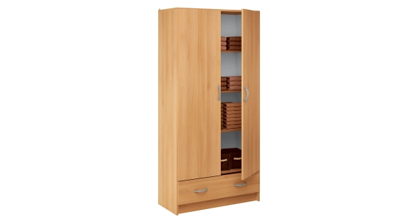 Svěží a elegantní šatní skříň s policemi. S přehledem do ní uschováte mnoho vašeho oblečení či doplňků. Využít ji můžete v ložnici, předsíni i šatně.