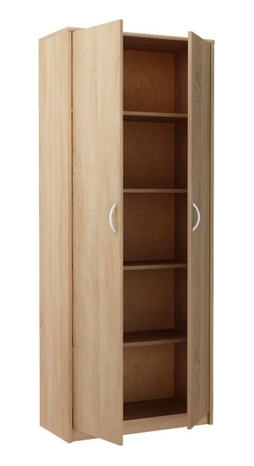 Šatní skříň 2-dveřová s policemi, dub sonoma. Korpus i dvířka jsou z kvalitního lamina. Lamino je odolné proti poškrábání, poškození, vlhkosti a vysokým teplotám. Skříň je v barevném provedení dub sonoma.