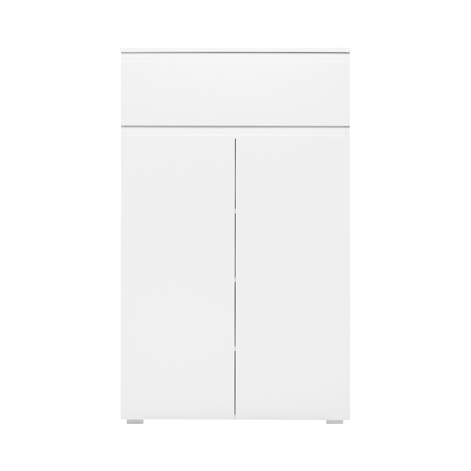 Botník obsahuje tři police a jednu širokou zásuvku s kovovými pojezdy.