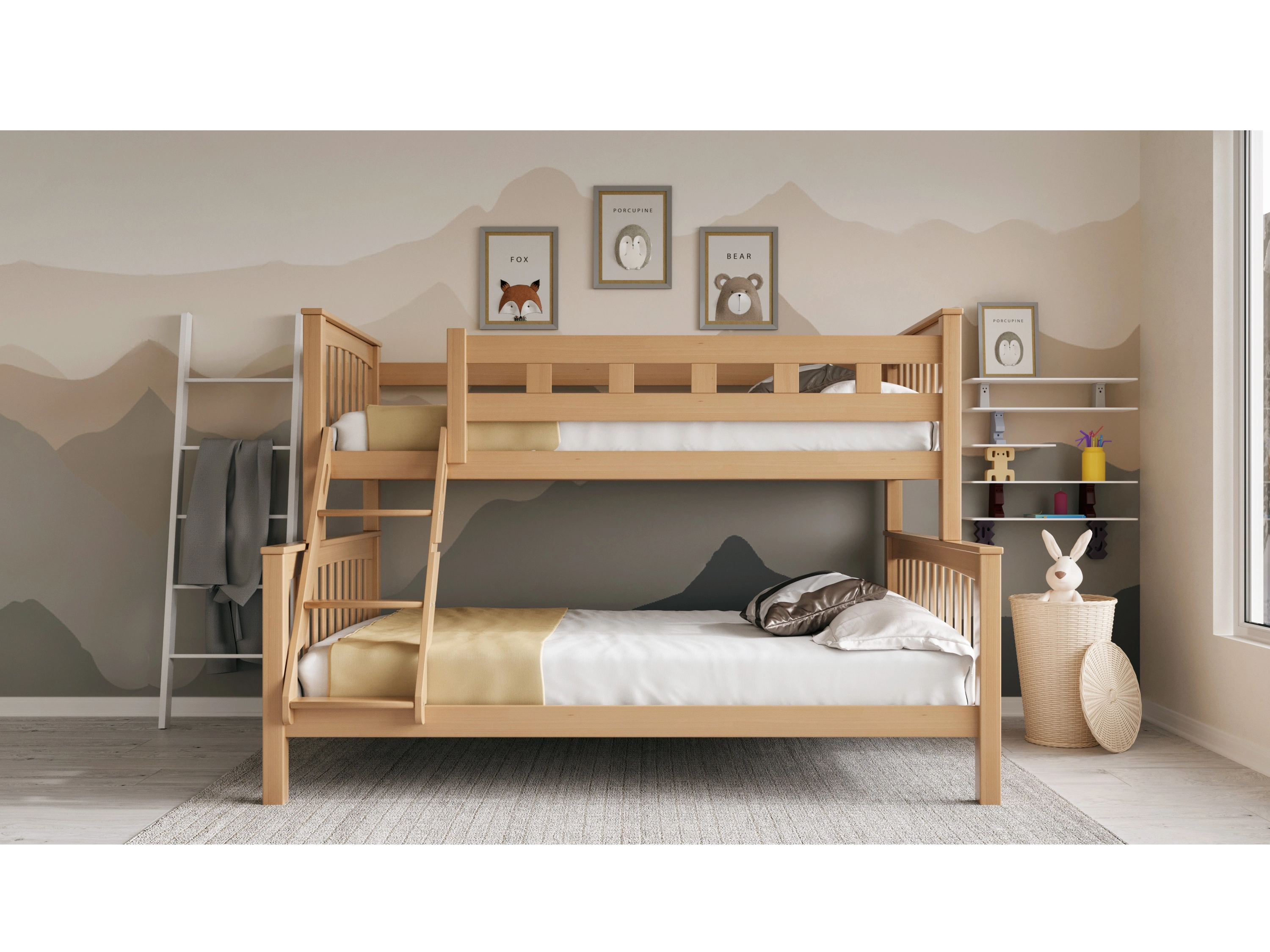 Barva: buk natur Rozměr (šxvxh): 148 x 160 x 210 cm Plocha na spaní: 90 x 200 cm a 140 x 200 cm Materiál: masivní bukové dřevo