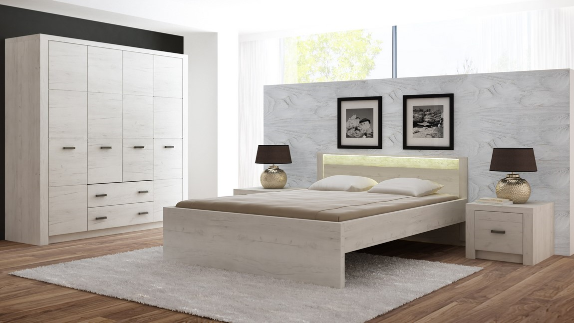 Postel 90x200 Laťový rošt je v ceně, matraci je potřeba dokoupit. Vhodný rozměr je 90x200 cm. Doporučujeme dokoupit zásuvku pod postel. Výška čela: 100 cm Výška čela u nohou: 40 cm Výška bočnic: 20 cm Výška roštu od země: cca 32 cm Tento systém je exkluzivní kolekce navržena v moderním duchu. Vsazením LED osvětlení do ozdobné rýhované lišty, které najdete v naší další nabídce k dokoupení, je zvýrazněn rustikální vzhled masivního dřeva. Celá řada se vyznačuje elegancí a jednoduchými tvary, které zaručují plné využití prostoru. Rozměry (šířka x výška x hloubka): 100 x 100 x 210 cm Materiál:LTD (lamino) s ABS hrany ( 0,5-0,8 mm ) Barva: jasan bílý Dodáváno v demontu