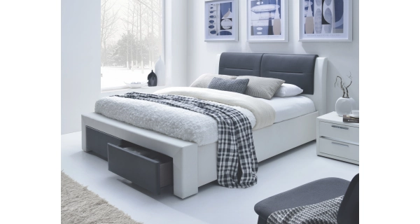 Postel BRETAGNE 140x200 cm se šuplíky, černá/bílá