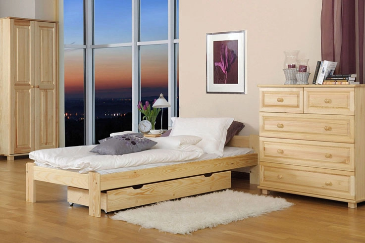 Postel 90x200 cm OBRÁZEK JE ILUSTRATIVNÍ - v ceně postele není úložný prostor! Materiál: masiv borovice, tloušťka 2,6 cm Postel je ručně lakovaná, broušená a opět lakovaná. Rozměry: šířka x délka: