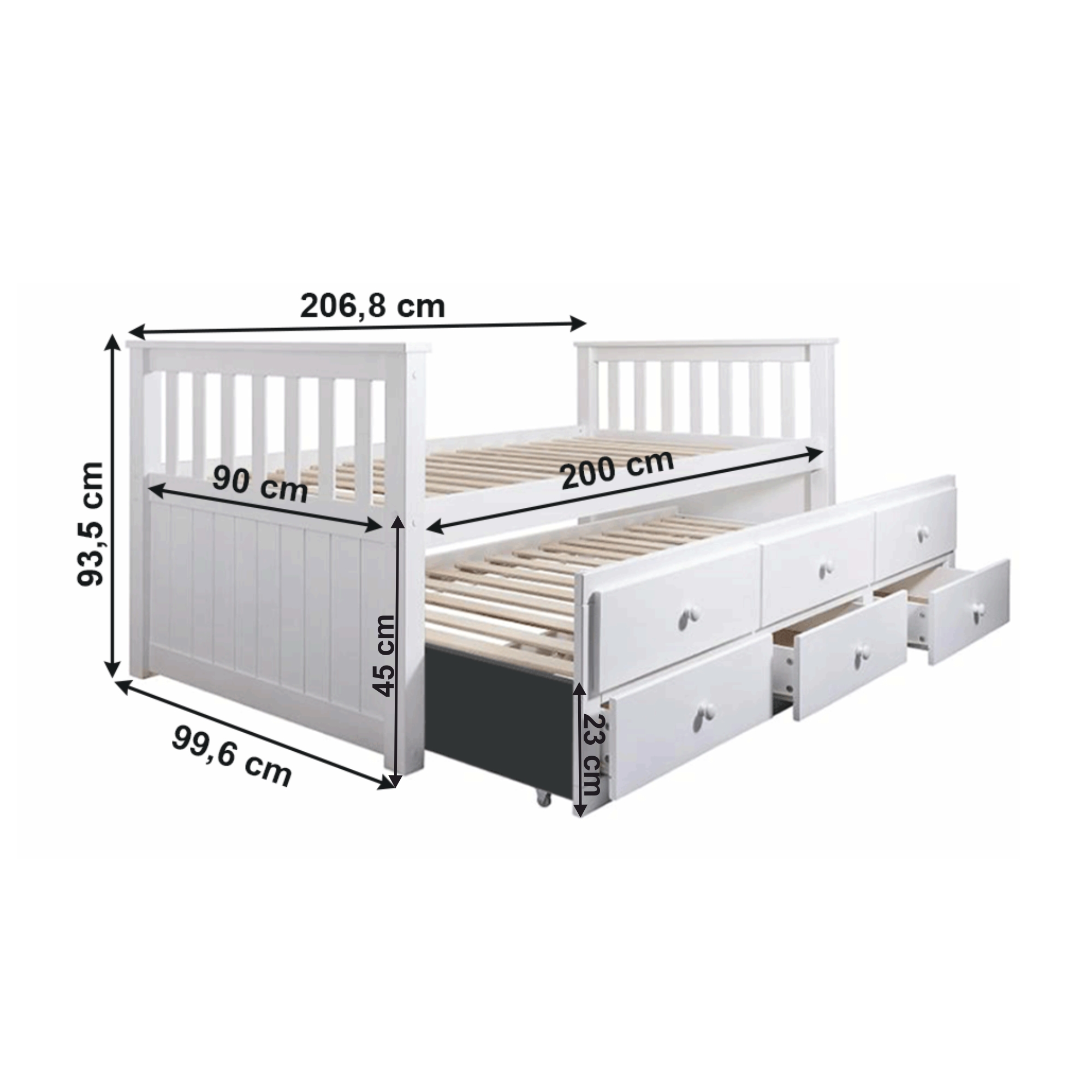 Postel s přistýlkou ALINAFE 90x200 cm, bílá