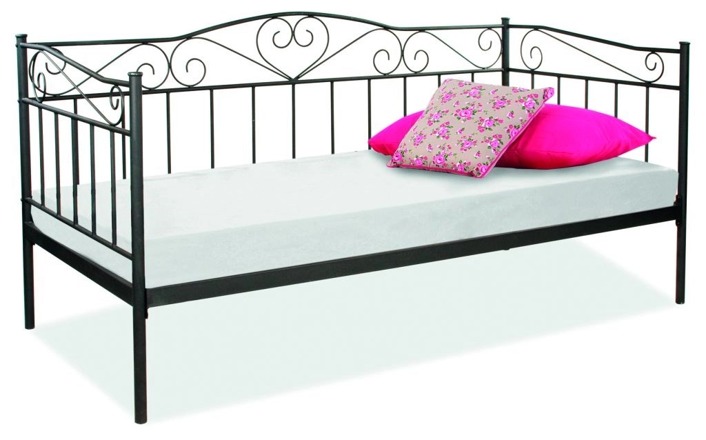 Postel s roštem Praktická postel v klasickém stylu. Elegantní zpracování působí velmi originálně. Konstrukce je kovová černé barvy. Rošt je v ceně, matraci je možno doobjednat - 90 x 200 cm. Výška roštu od země - cca 34 cm. Výška: 97 cm Šířka: 96 cm Hloubka: 208 cm Barva: černá Materiál: kov Dodáváno v demontu, záruka 24 měsíců.