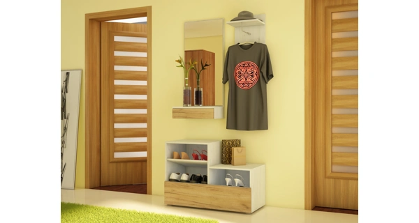 Předsíň  Barva: craft bílý/craft zlatý Materiál: lamino 16 mm Rozměry (šxvxhl): 90 x 190 x 31 cm Dodává se v demontu.