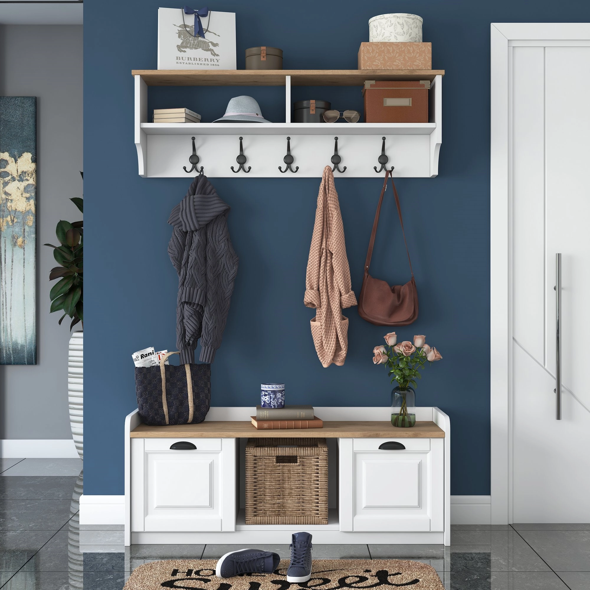 Předsíňová stěna KALDAL, bílá/vlašský ořech
