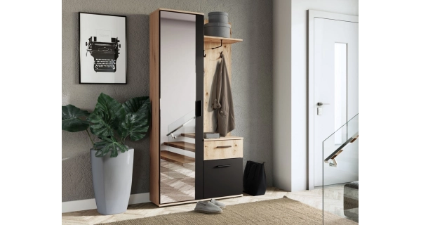 Předsíňová stěna YORMO, dub artisan/černá