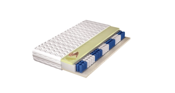 Výplň matrace: taštičkové pružiny - 7 zón tvrdosti (počet pružin - 262 ks/m²), VISCO (termoelastická) pěna o tloušťce 3 cm, latexová pěna o tloušťce