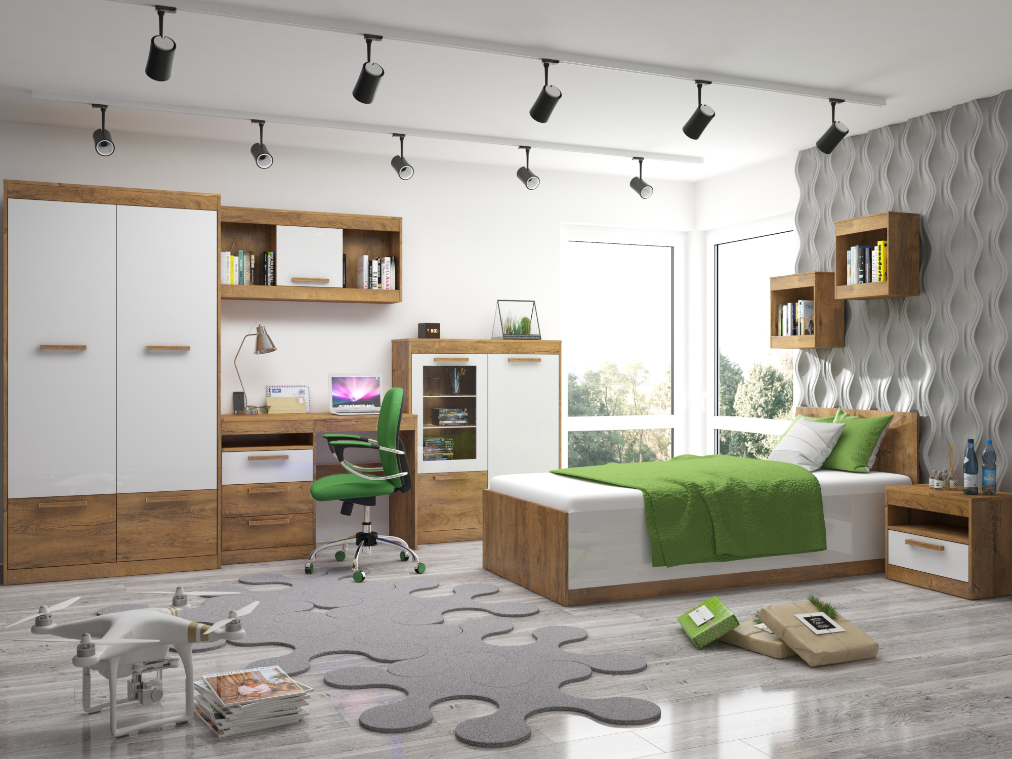 Psací stůl GATTON se šuplíky, dub burgundský/bílý lesk, 5 let záruka
