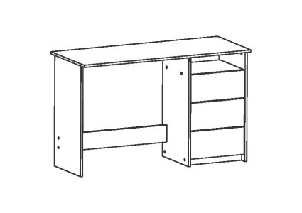 Psací stůlMá 3 šuplíky pro ukládání dokumentů, velmi praktický výklenek. Zásuvkovou jednotku lze namontovat vlevo nebo vpravo.