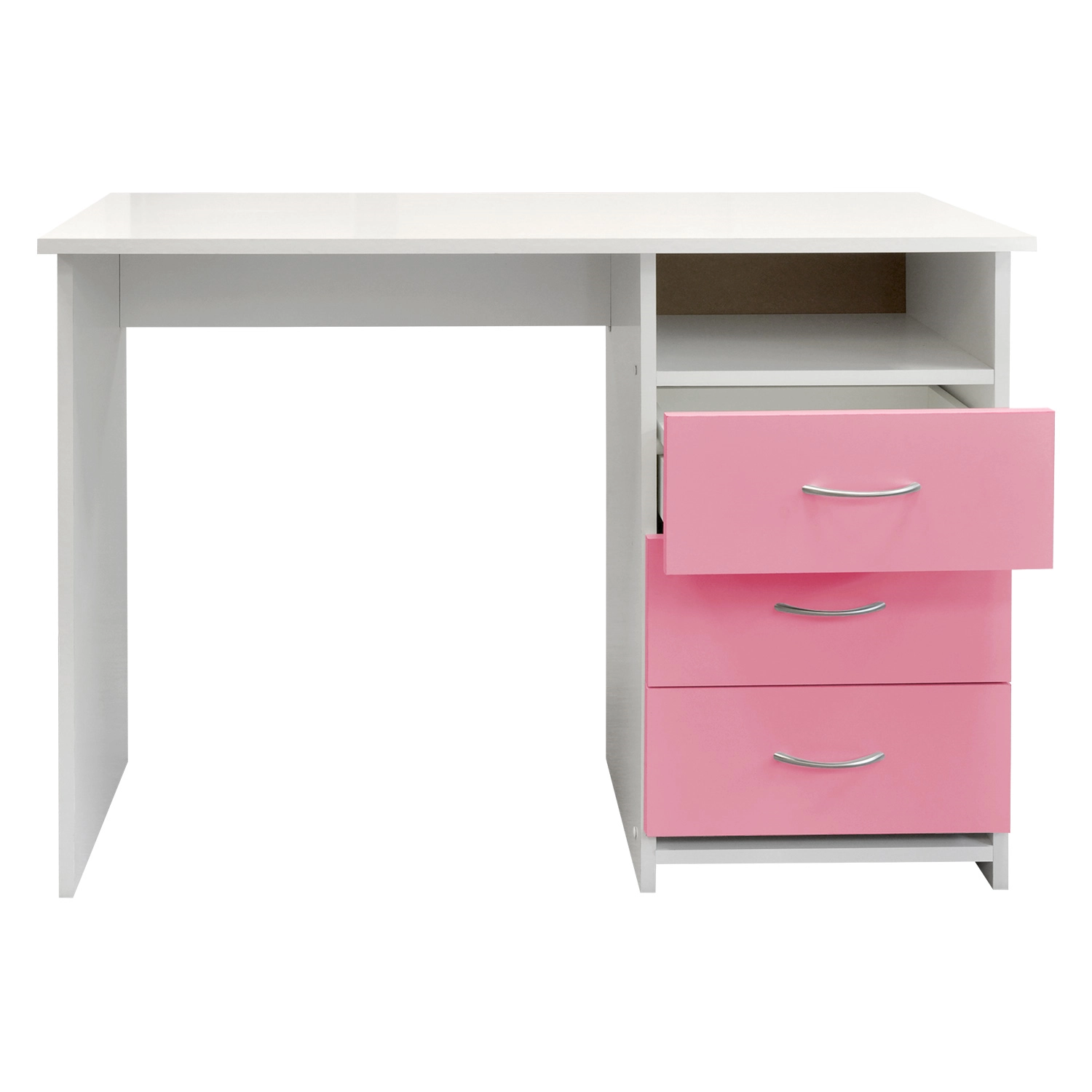 Psací stůl se šuplíky CASEN, bílá/růžová