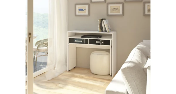 Psací stůl Barva: bílá/černý lesk Rozměry (šxhxv): 98 x 39/73 x 87 cm Materiál: LTD 16 mm Dodání v demontu.