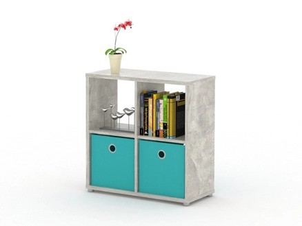 Policový regál v dekoru beton V ceně regálu nejsou úložné boxy ani doplňky. Barva: beton Rozměry (šxvxh): 70,2 x 73,2 x 33 cm Rozměry prostoru pro umístění boxu jsou: - šířka 31,8 cm - hloubka 31,8 cm - výška 32,6 cm Materiál: - vrchní deska, spodní deska a boky LTD 22 mm - ostatní díly LTD 16 mm Dodáváno v demontu.