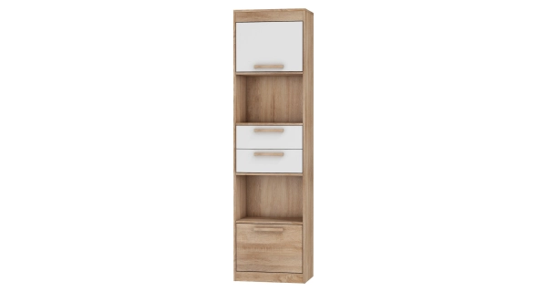 Kombinovaný regál Barva: dub sonoma/bílý lesk Rozměr (šxvxh): 52 x 193 x 36 cm Materiál: LTD, ABS hrany Tiché zavírání. Dodáváno v demontu. Záruka 5 let.