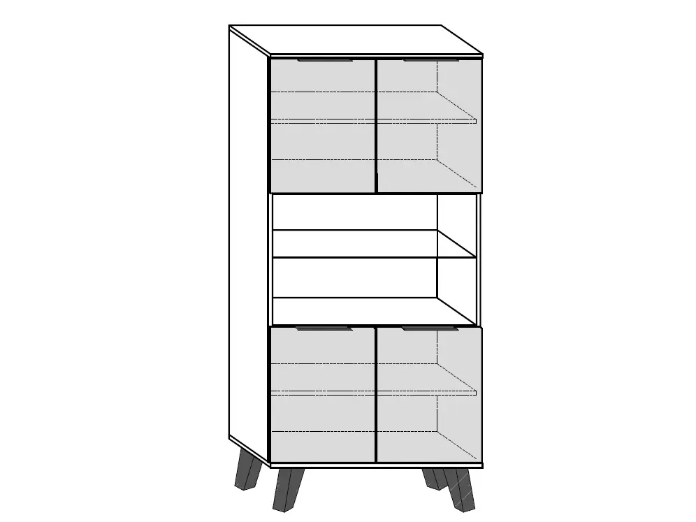 Policový regál se čtyřmi dvířky Barva: - dub sonoma/bílý lesk - úchyty a nožky: černá Rozměr (šxvxh): 80 x 174 x 40 cm Výška nožek: 18 cm Materiál: - lamino o síle 16 mm s ABS hranami - dřevěné