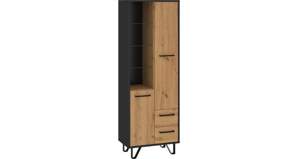 Kombinovaný regál Barva: - černá/dub artisan - nožky a úchytky: černá Rozměr (šxvxh): 60 x 170 x 39 cm Výška nožek: 12 cm Materiál: - lamino 16 mm, ABS hrany - 3 police: sklo - nožky: kov Nosnost: -