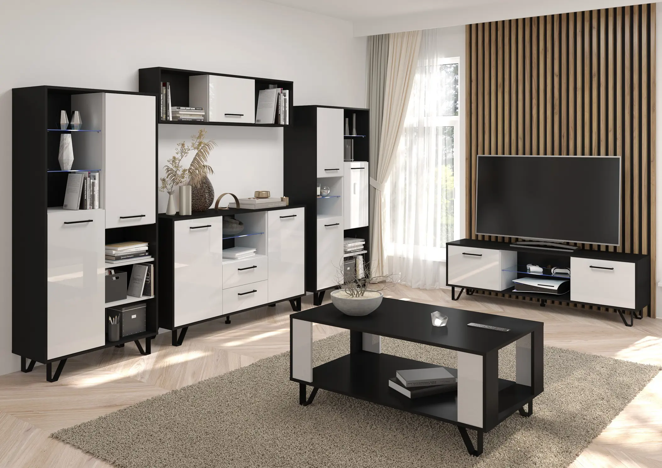 Regál PRUDHOE 2D, černá/bílý lesk