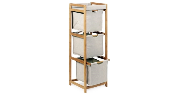 Regál 3 šuplíky, lakovaný bambus a látkaNosnost každé police 2,5kg Rozměr (šířka x hloubka x výška):34x33x110 cm Dodáváno v demontu, záruka 24 měsíců.