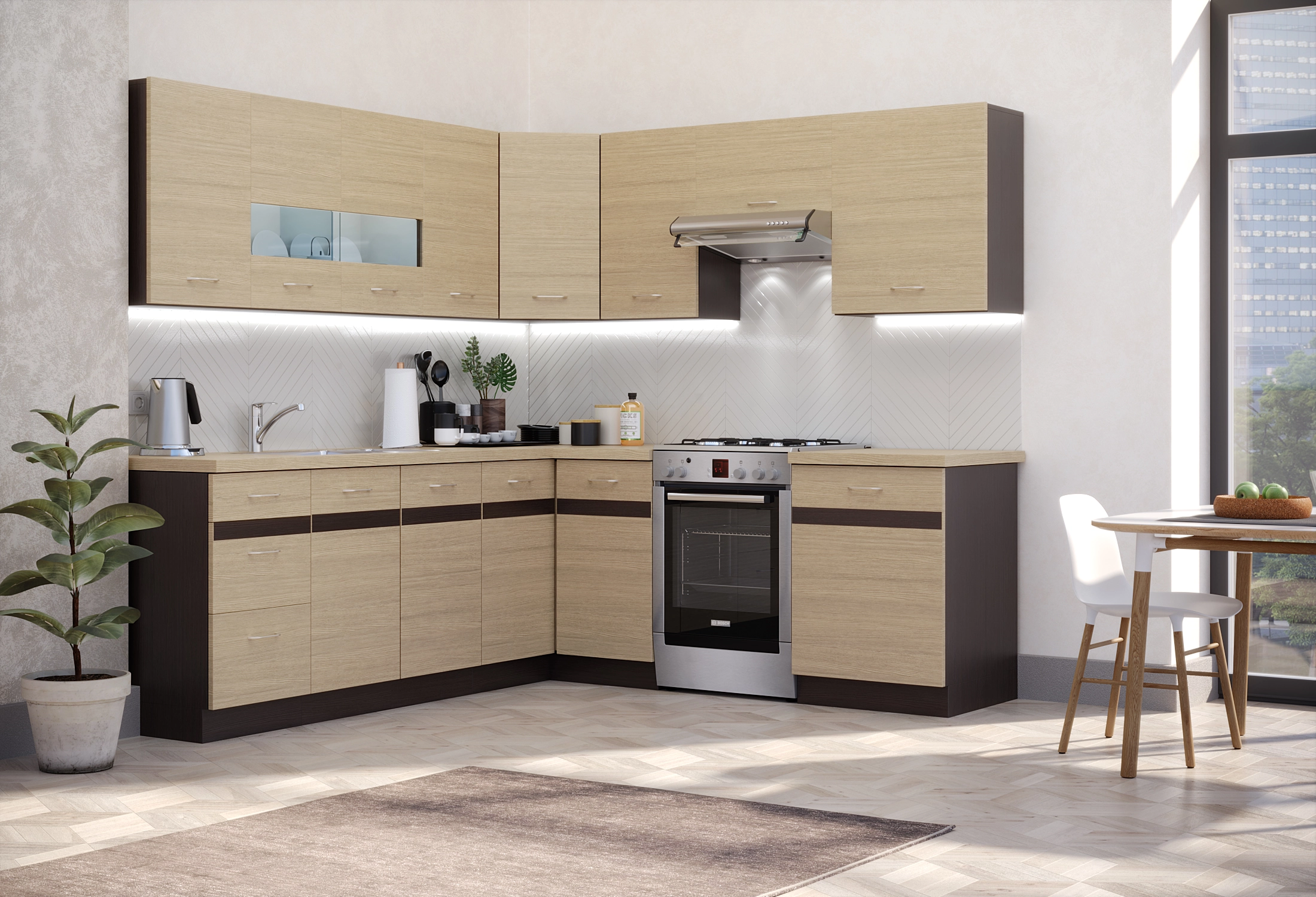 Rohová kuchyně BELISA 220x210, rijeka světlá