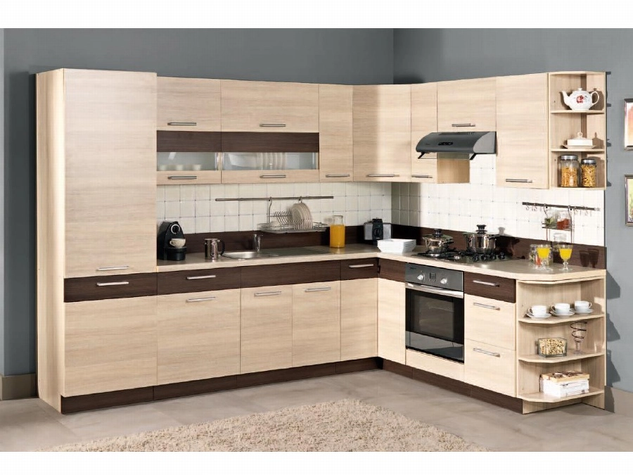 Rohová kuchyně RUTHIN, 290 x 215 cm, rijeka světlá