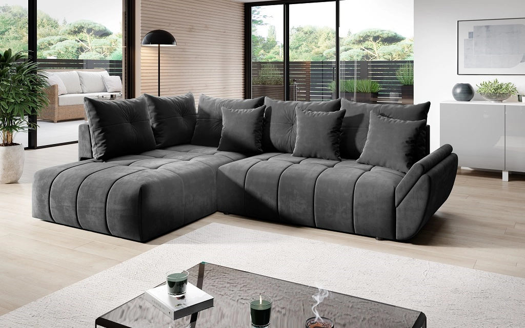 Rozkládací rohová sedačka Sedačka je univerzální = roh lze smontovat na pravý i levý! Obrázek rozkladu je pouze ilustrativní (jiná barva)!