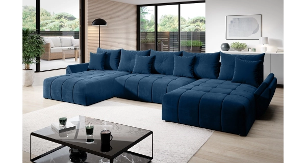 Součástí jsou polštáře se zipem a úložný prostor. Celočalouněná, vhodná do prostoru.