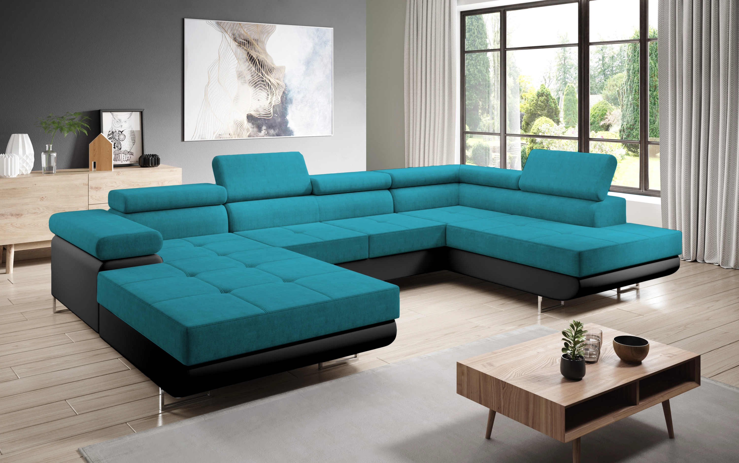 Potahová látka: orinoco 85 = tyrkysová látka/madryt 1100 = černá ekokůže