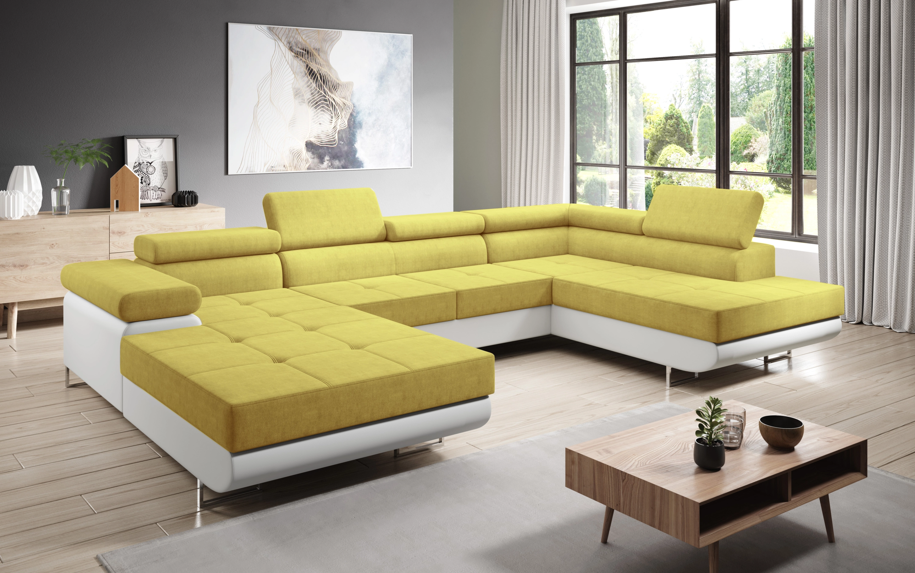 Rohová rozkládací sedačka SINGER U, pravá, žlutá/bílá