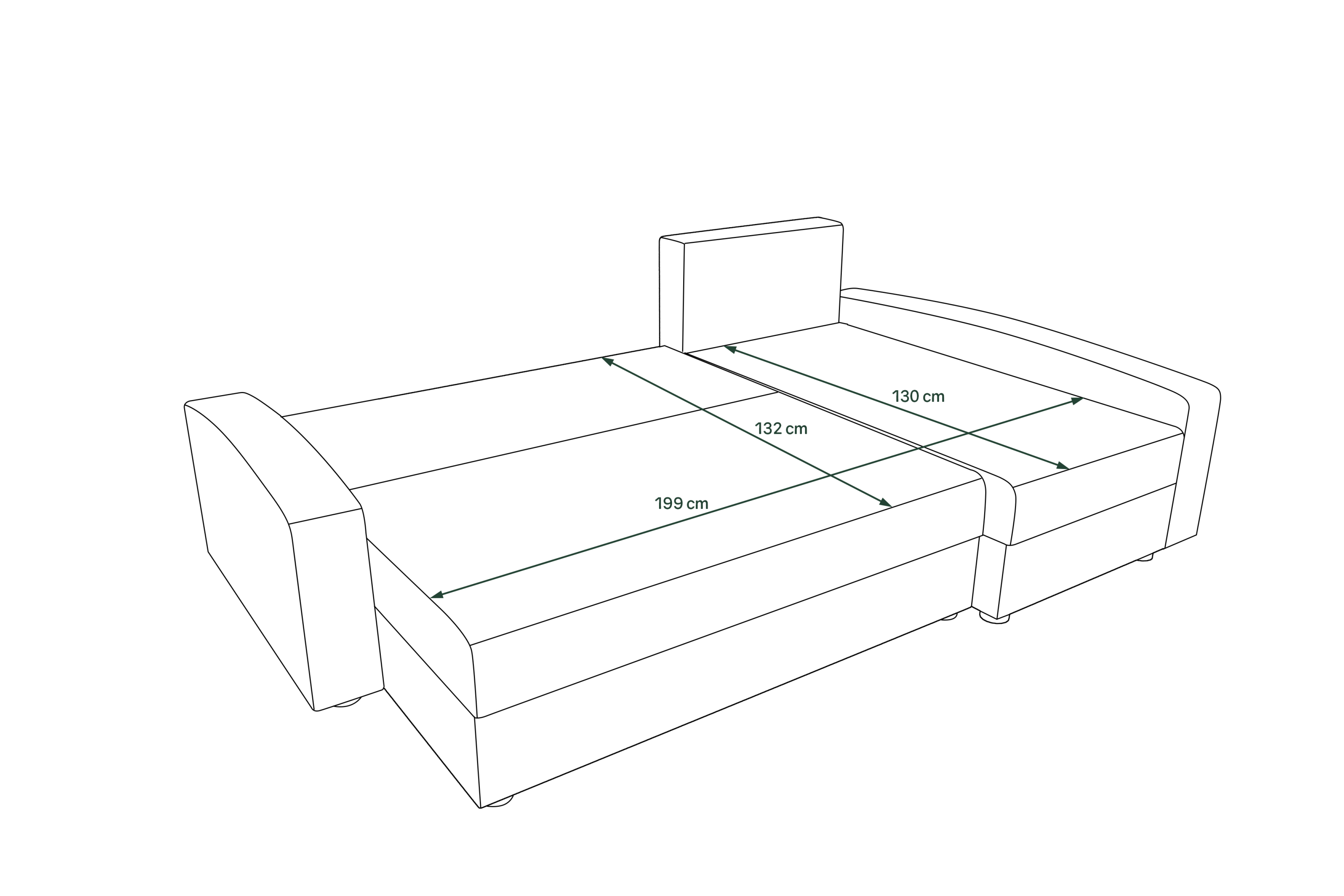 Ložná plocha (šxh): 199 x 132 cm Výška sedu: 37 cm Výška područek: 50 cm Šířka otomanu: 68 cm