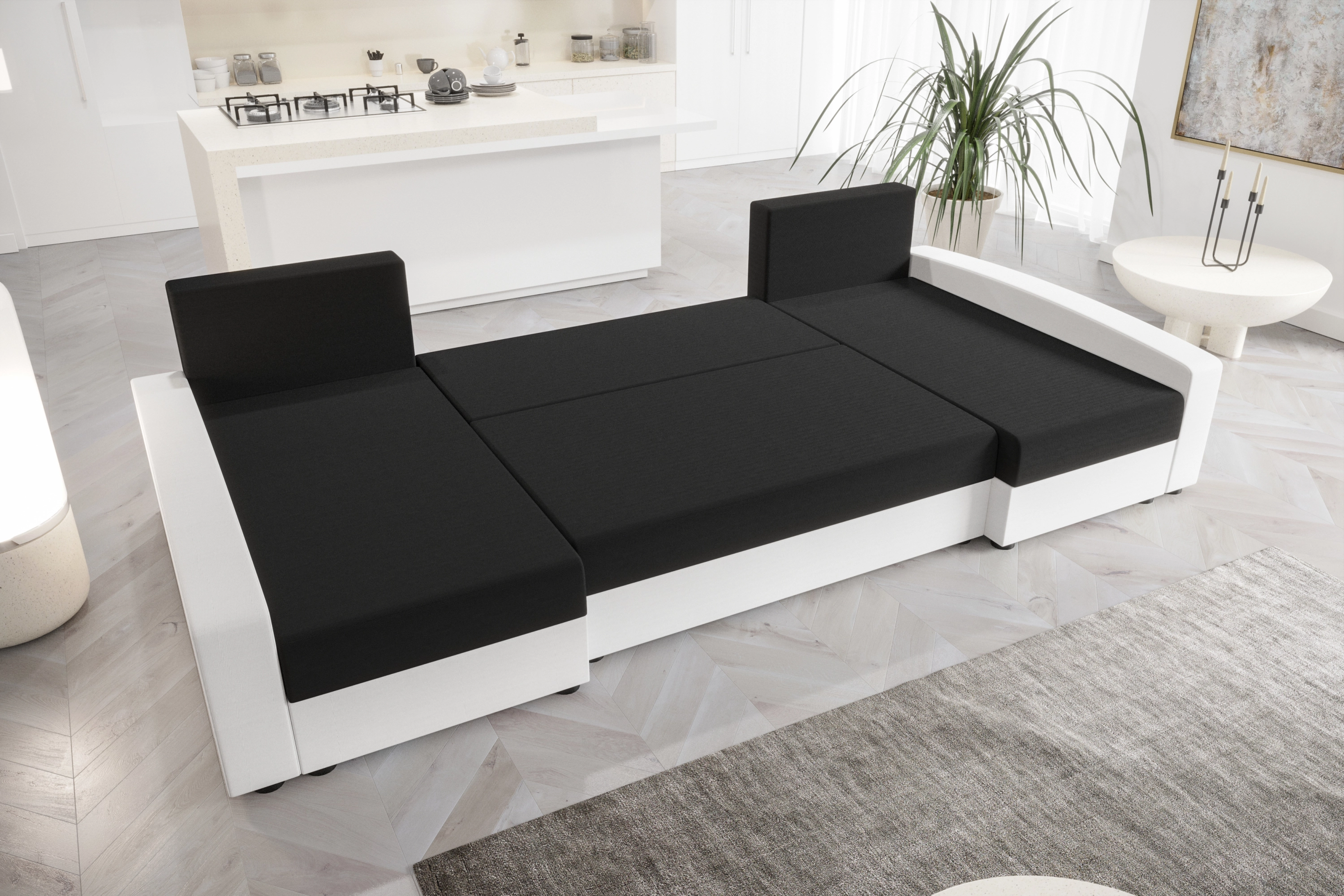Rozkládací rohová sedačka ve tvaru U