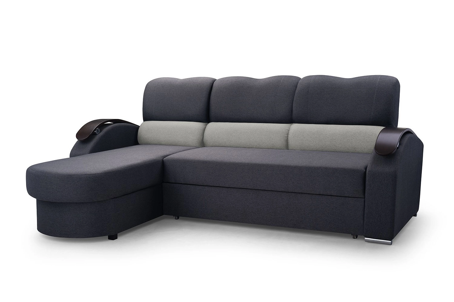 Rozkládací rohová sedačka s úložným prostorem Provedení: levé Rozměry (šxvxh): 235 x 98 x 175 cm Látka: Bahama 35 + Bahama 31 Materiál: - rám z masivního dřeva a nábytkové desky - v sedáku jsou použity bonelové pružiny a vysoce elastická pěna T30 tloušťky 2 cm Mechanismus rozkladu: delfín Plocha na spaní: 200 x 128 cm Záda sedačky jsou čalouněna látkou, je ji tedy možné umístit do prostoru. Detaily sedačky jsou pouze ilustrační, jiná barva a provedení! Dodáváno v demontu