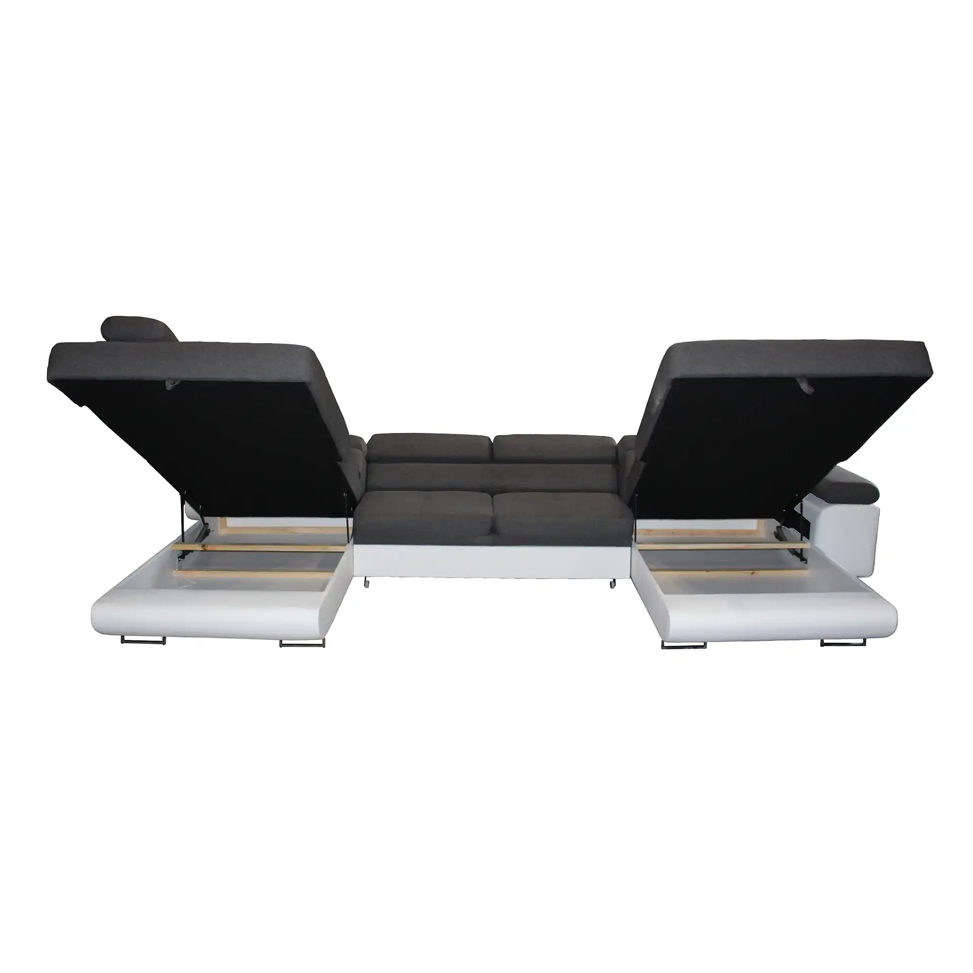 Součástí jsou 4 regulovatelné záhlavníky, rozklad - výsuvná matrace (delfin) a 2 úložné prostory v otomanech. Sed sedačky je prošívaný.