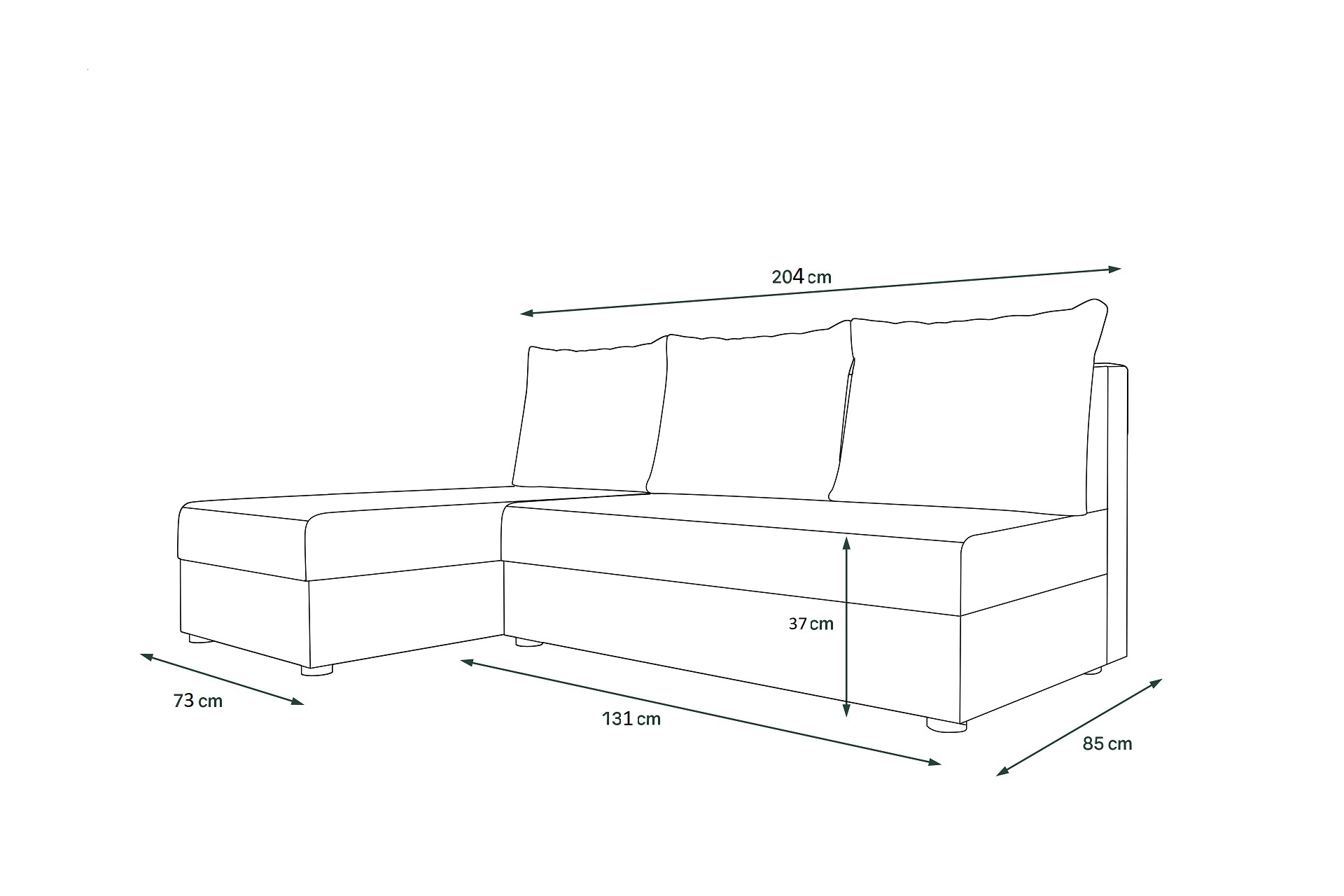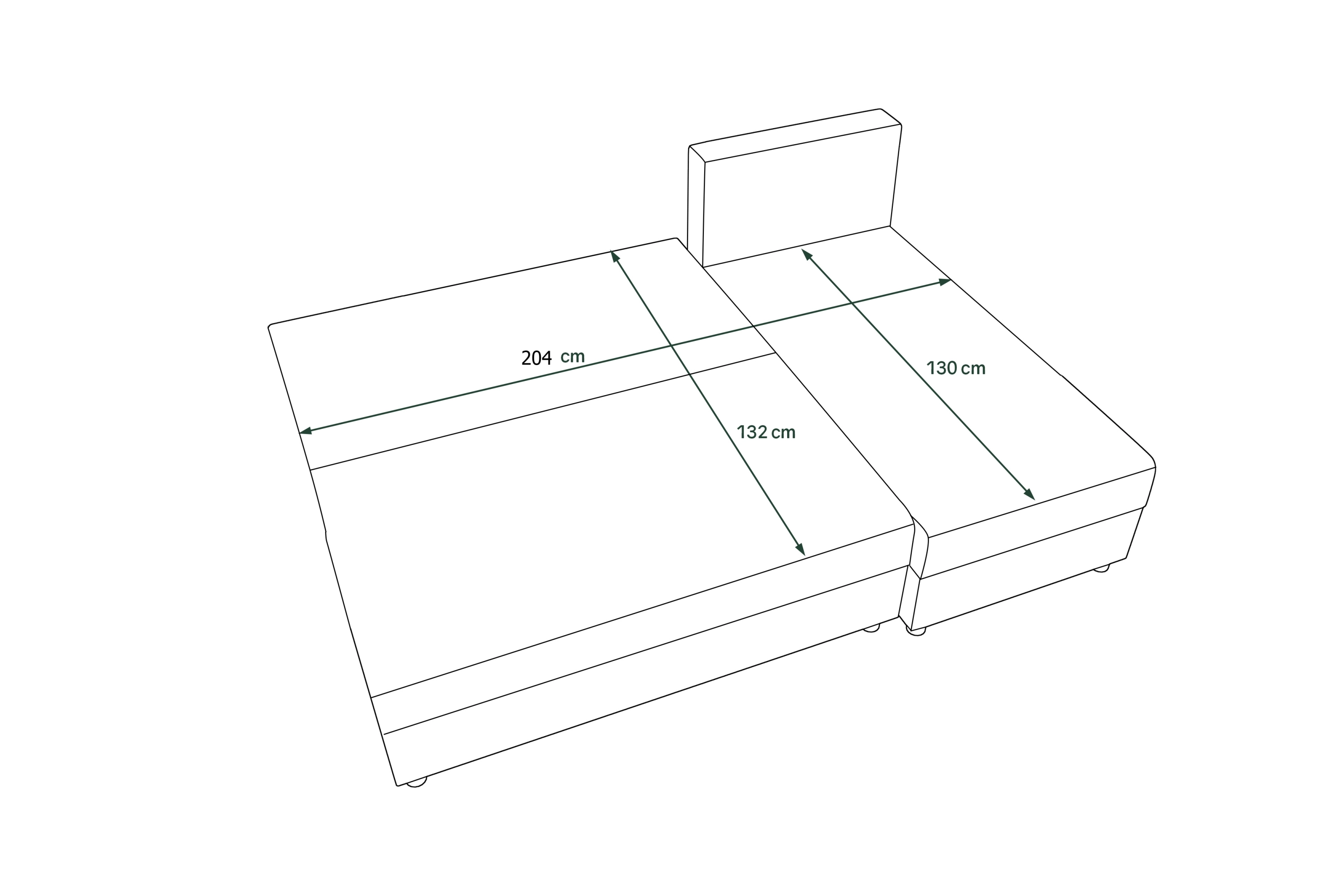 Ložná plocha (šxh): 204 x 132 cm Výška sedu: 37 cm Hloubka sedu: 70/125 cm (bez polštářů)