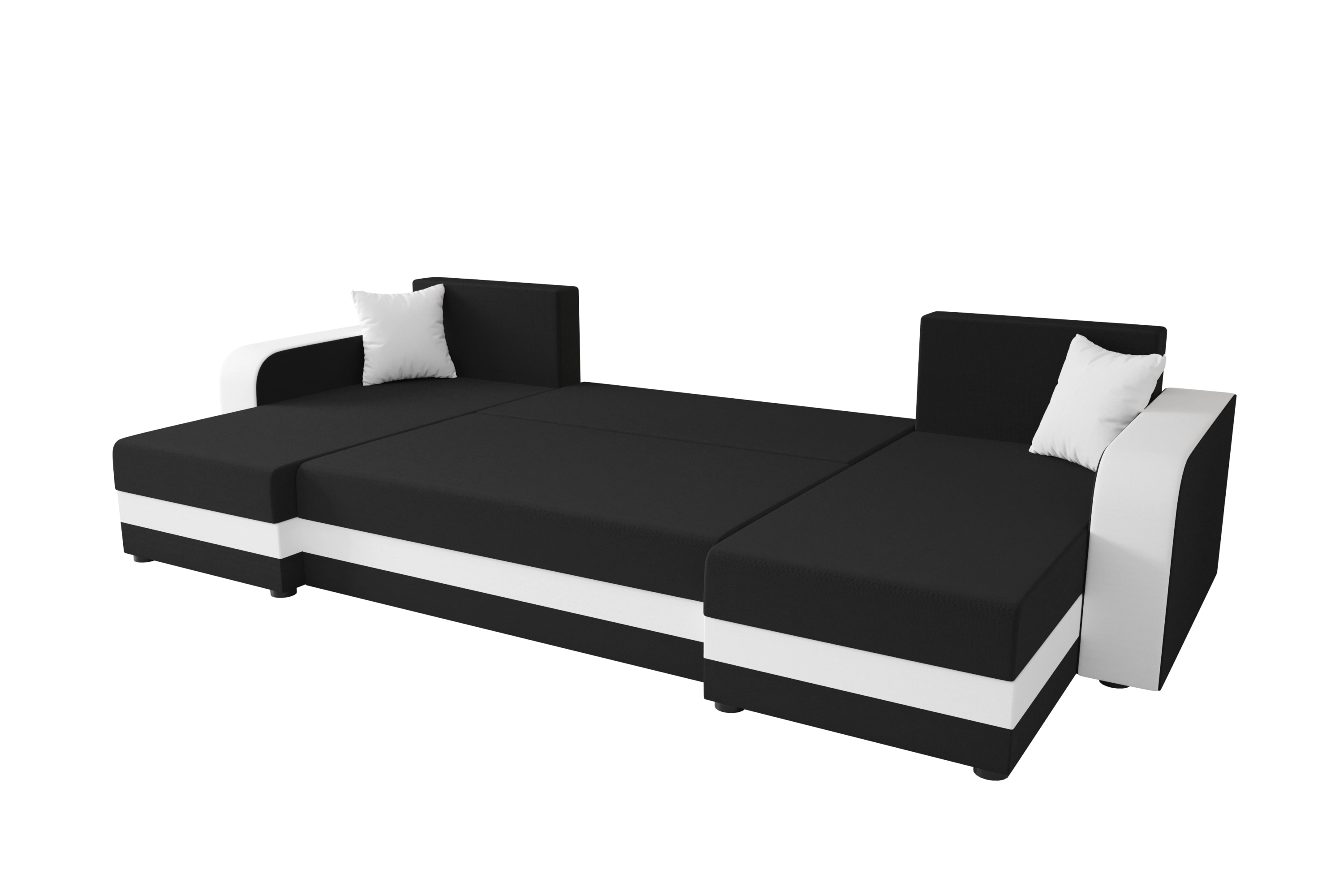 Součástí jsou 4 zadní polštáře se zipem, dekorační polštáře v rozměrech 40 x 40 cm a 1 úložný prostor.