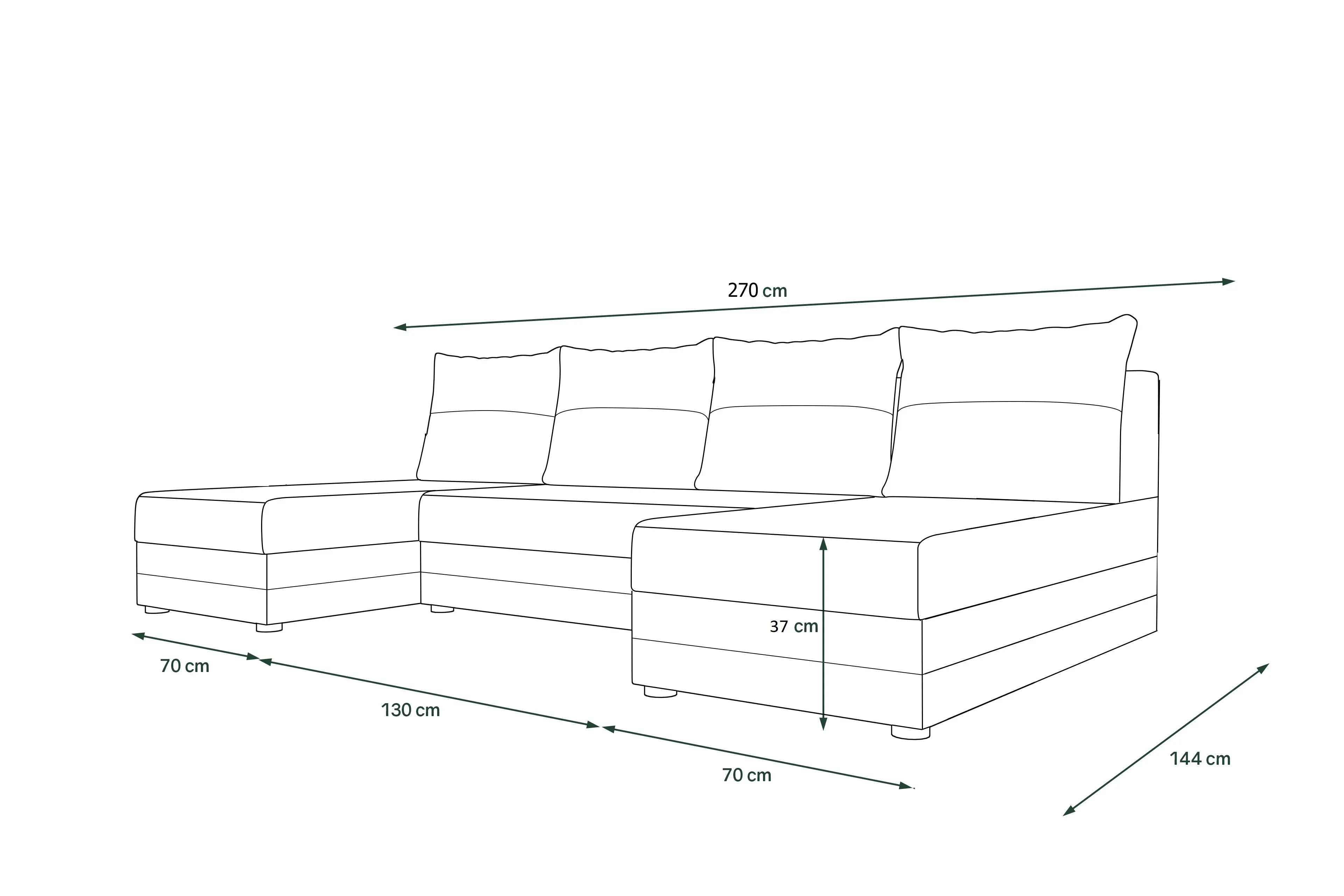Hloubka sedu: 70/125 cm (bez polštářů)
