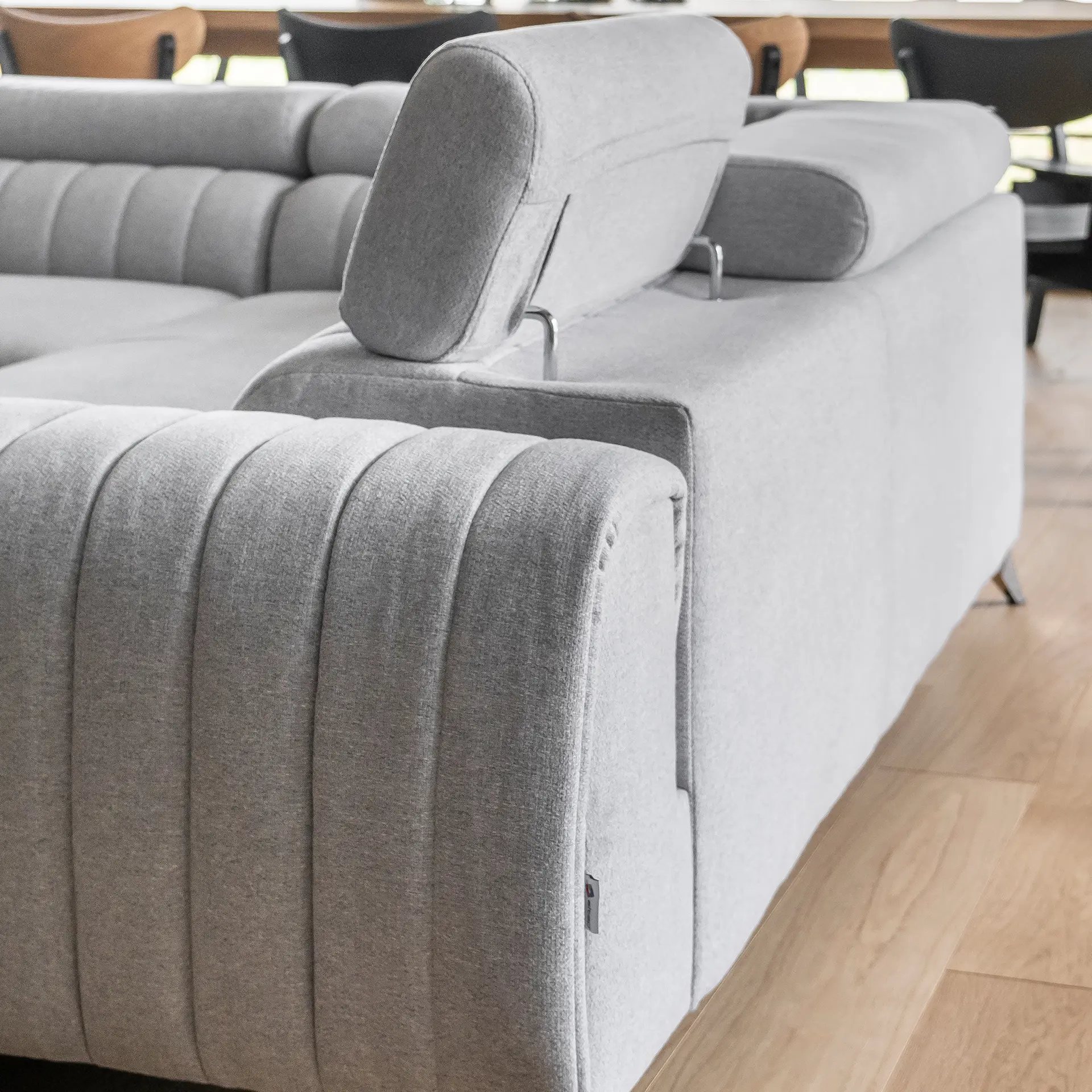 Rozkládací rohová sedačka ve tvaru U s úložným prostorem a polohovacími záhlavníky.