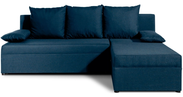 Rozkládací rohová sedačka Sedačka je univerzální = roh lze smontovat na pravý i levý. Potahová látka: nube 40 = modrá látka