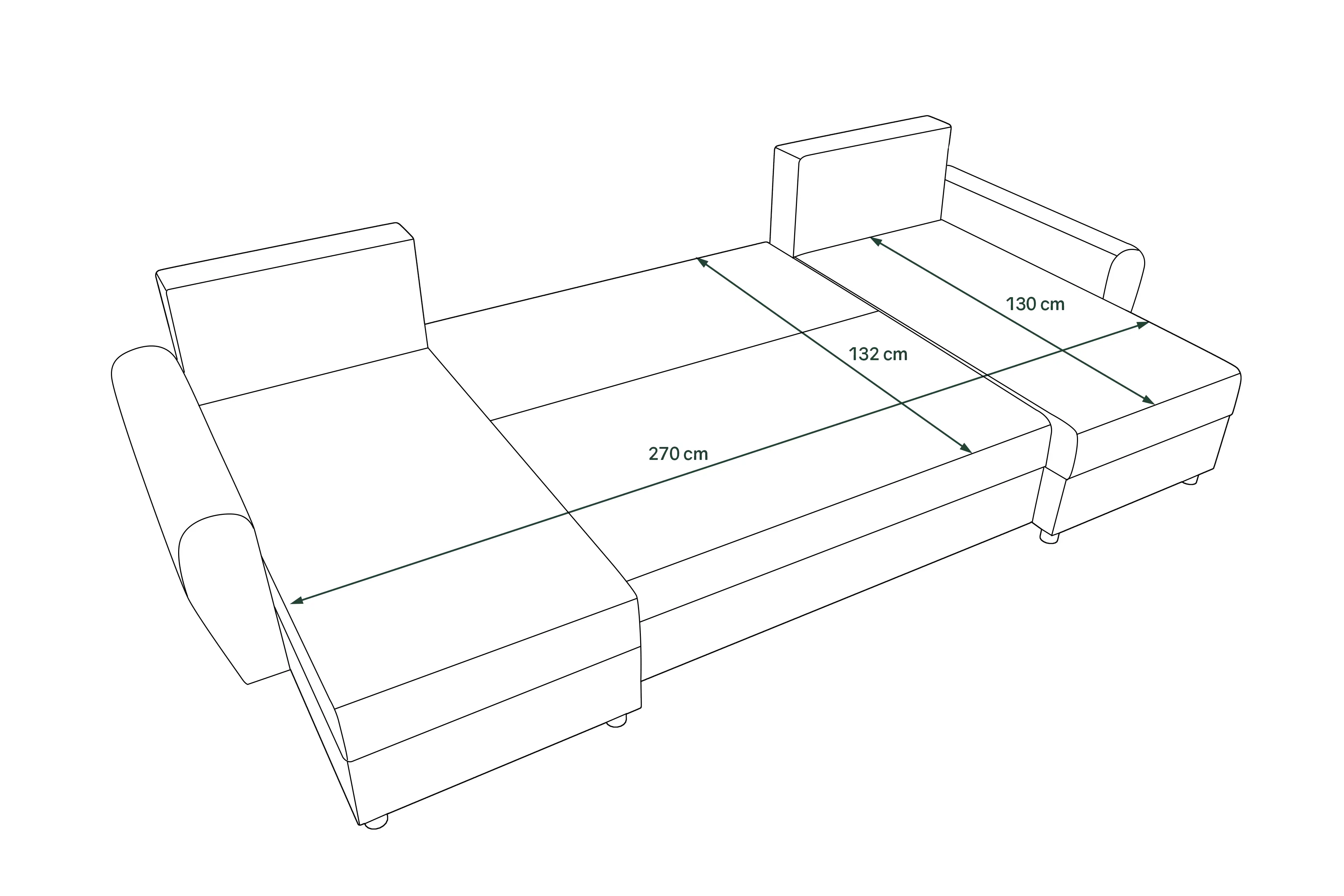 Ložná plocha (šxh): 267 x 132 cm