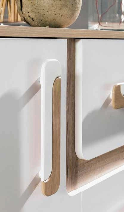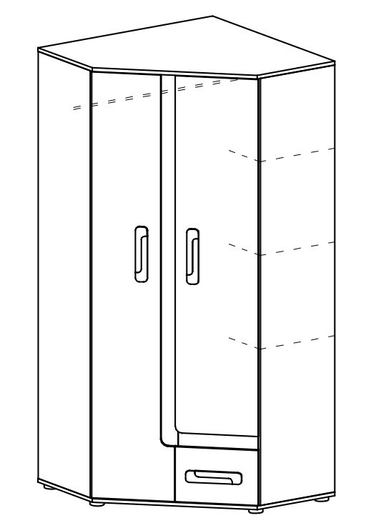 Rohová skříň, dub jasný/bílá. Šatní skříň rohová ze sektorové řady, která se vyznačuje netradičním zpracováním barev a originalitou úchytů. Tento styl nábytku zaujme každou mladší generaci. Skříň je vyrobena