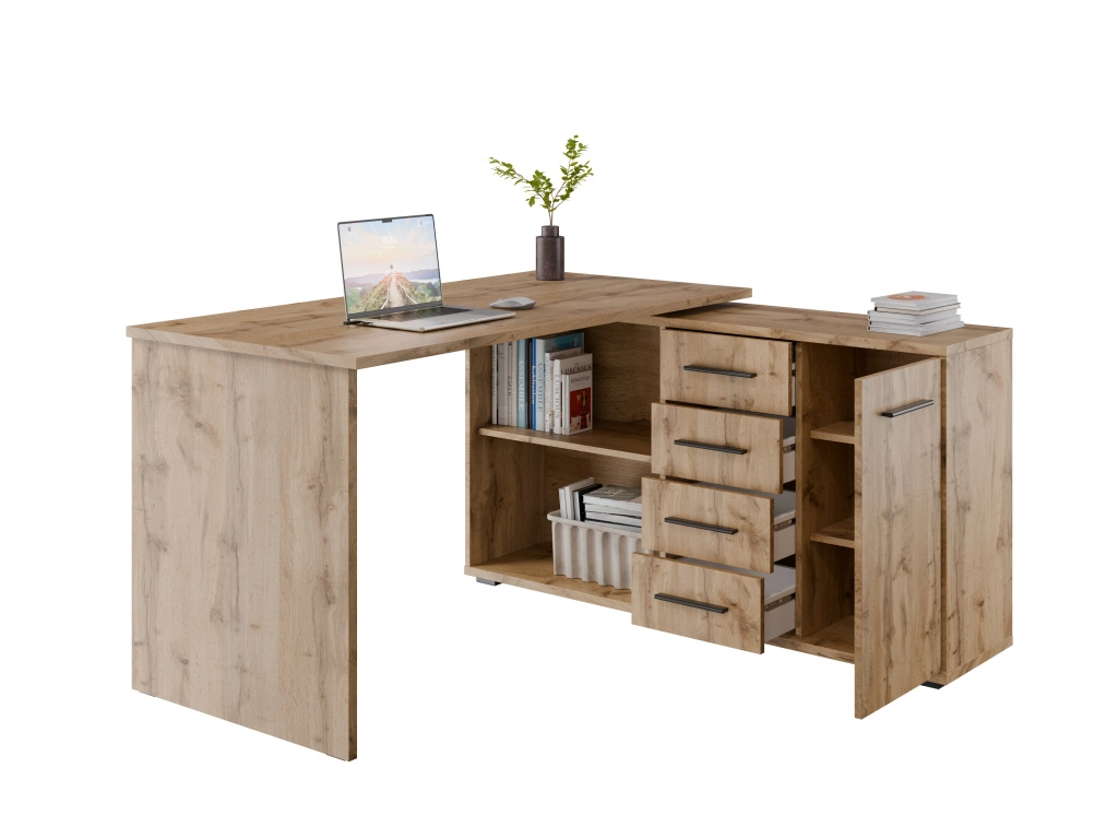 Rohový psací stůl NEJBY GIANNI, pravý, dub wotan