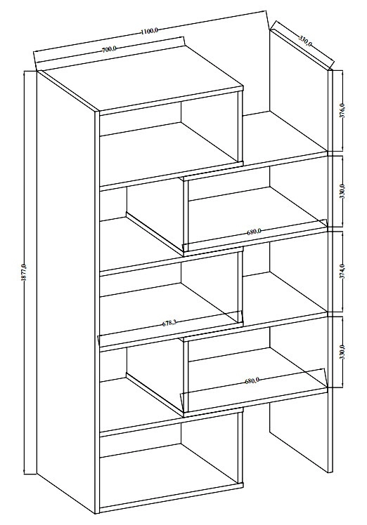 Regál má posuvnou část, takže je možné jej roztáhnout až na šířku 140 cm nebo dát do rohu a vybízí tak k dalším nápadům, jak využít prostor. Nábytek je vyroben z kvalitní laminátové desky (22 mm).