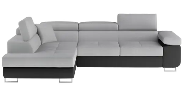 Rozkládací rohová sedačka MENDON 18, světle šedá látka/černá ekokůže, levá