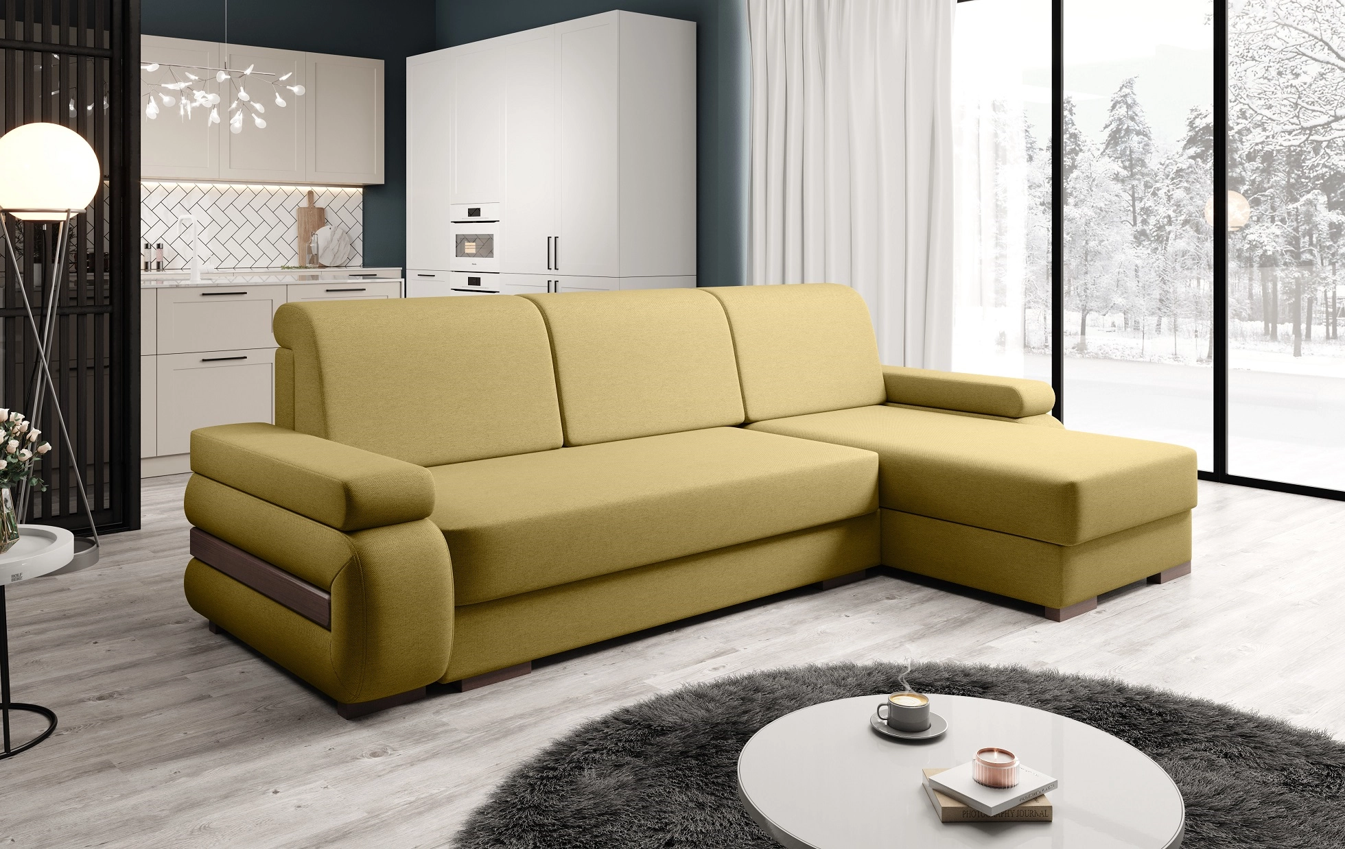 Rozkládací rohová sedačka SITONA L 4, pravá, žlutá