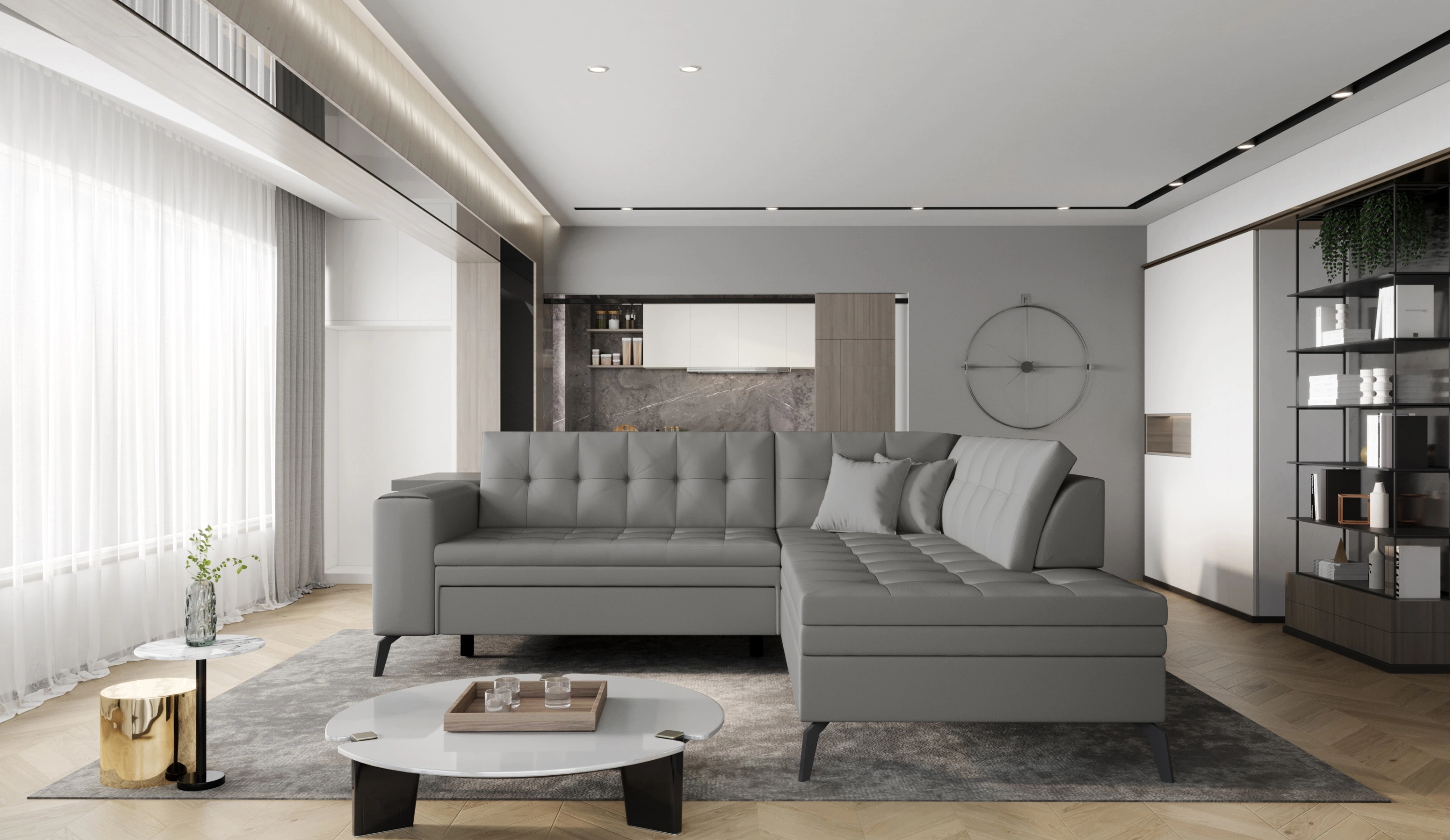 Kdykoli - díky systému delfín - snadno a intuitivně přeměníte pohodlnou sedačku na prostornou postel. Takhle vypadá dokonalý odpočinek. Dokonalé dokončovací prvky nábytku - atmosférické prošívání, prostorný sedák a zajímavé nohy z kovu a plastu. Všechny tyto prvky znamenají, že kromě funkčního kusu nábytku máte ve svém bytě i skutečnou dekoraci obývacího pokoje.
