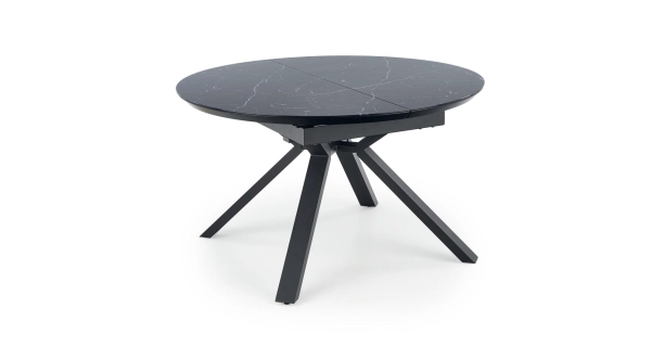 Elegantní oválný stůl s deskou v odstínu černého mramoru, nohami v černé barvě a možností rozložení.
