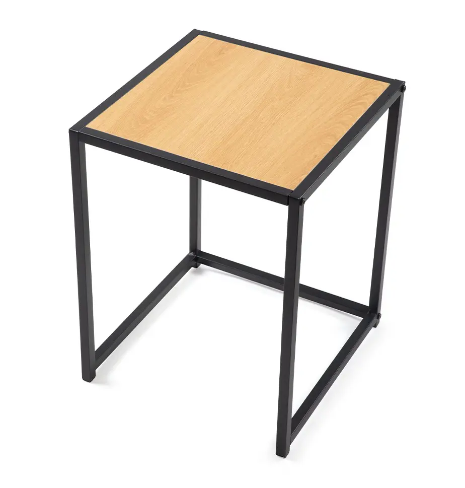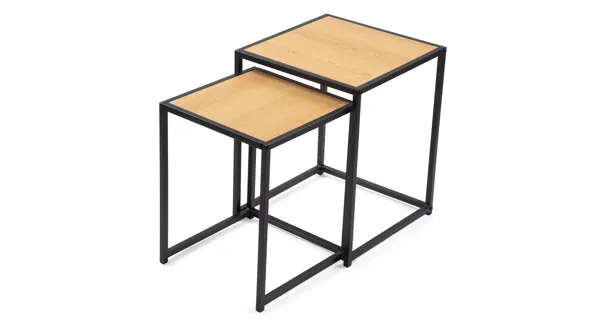Sada dvou konferenčních stolků s moderním minimalistickým designem. Stolové desky v dekoru přírodního dřeva dodávají hřejivý vzhled. Stabilní kovová konstrukce v černém provedení. Možnost zasunutí jednoho stolku pod druhý pro úsporu místa. Spojuje praktičnost, variabilitu a elegantní styl.