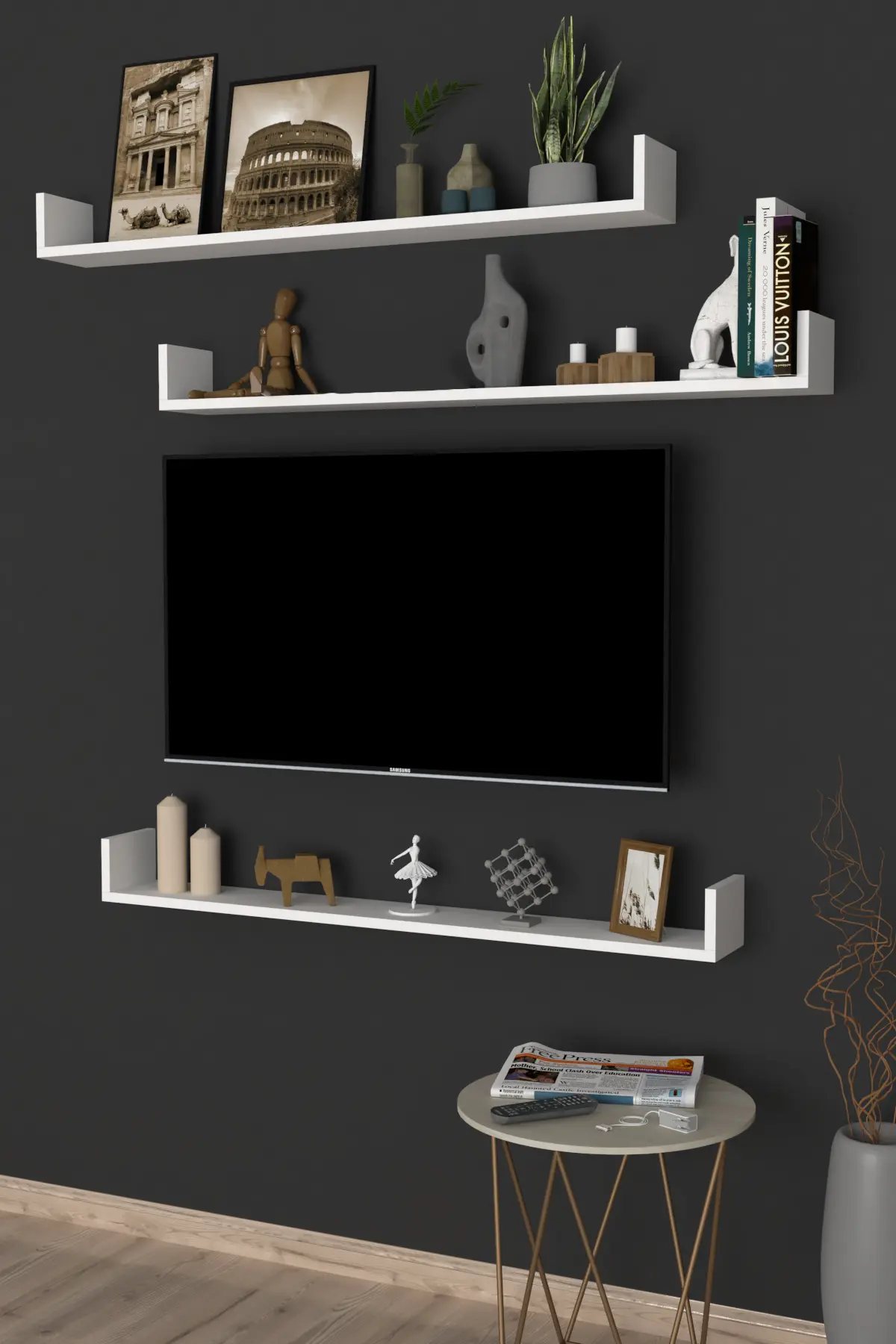 Sada 3 nástěnných polic HALYOR 120 cm, bílá