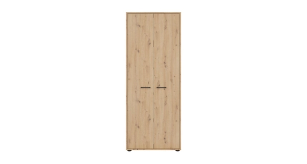 Šatní skříňDvířka mají systém tichého dovírání a černé, tenké úchyty pro snadnější manipulaci při otevírání.Skříň nabízí úložný prostor v podobě police, jež se nachází ve vrchní části. Hned pod ní je upevněná